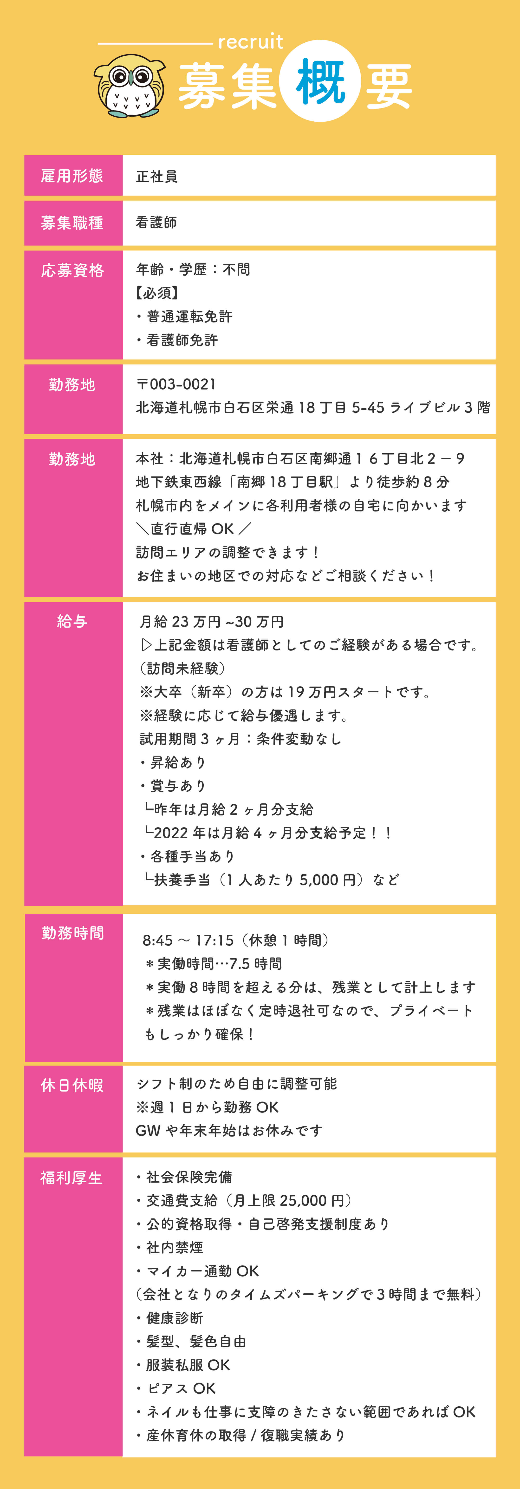 | 住所 | 〒003-0021 北海道札幌市白石区栄通18丁目5-45ライブビル302 |